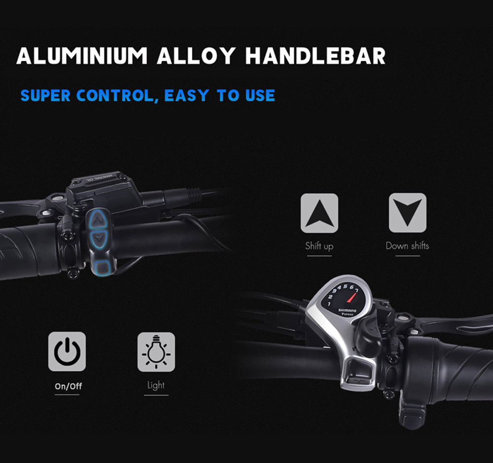 【High Performance】 Shimano 7-speed transmission system and has a excellent performance, suitable for riding in various conditions. You can easily cross any difficult terrain and reach your destination. LCD display (display function) (setting function), can display battery status, speed, mileage, gears, faults, etc.